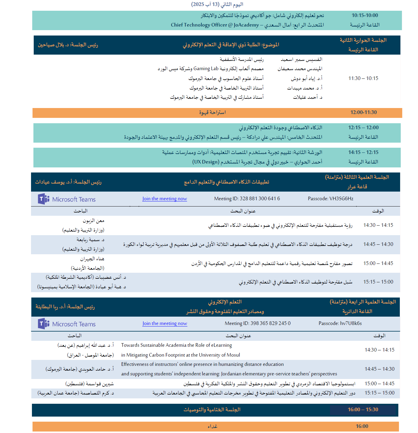 يأتي انعقاد مؤتمر مركز التعلم الإلكتروني ومصادر التعليم المفتوحة الثاني تحت عنوان "التعلم الإلكتروني: الواقع والمستقبل" بهدف استشراف مستقبل التعليم الرقمي في الأردن، وتقييم التجارب الحالية، والخروج بتوصيات عملية تسهم في تطوير المنظومة التعليمية الوطنية. وفي ظل المتغيرات المتسارعة، يسعى هذا المؤتمر إلى جمع صُناع القرار في وزارة التربية والتعليم والجامعات والمؤسسات الوطنية والقطاع الخاص؛ لرسم خارطة طريق تعزز جودة التعليم ومرونته، وصولاً إلى بيئة تعليمية مستدامة تواكب المعايير العالمية وتلبي احتياجات الجيل الرقمي.